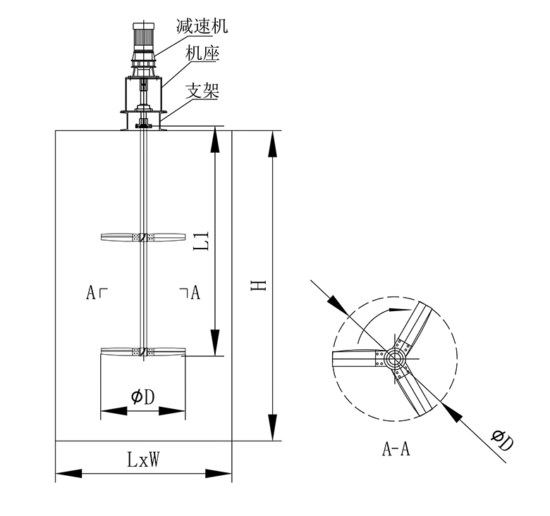 ● 攪拌軸材質可根據污水選擇碳鋼玻璃鋼防腐、304攪拌軸。