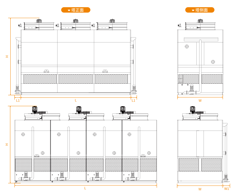 合理的檢修空間,為設備的維護保養提供便利,可通過檢修門進入塔內維護,關鍵部位管束和噴淋系統的維修可以更直接更方便。